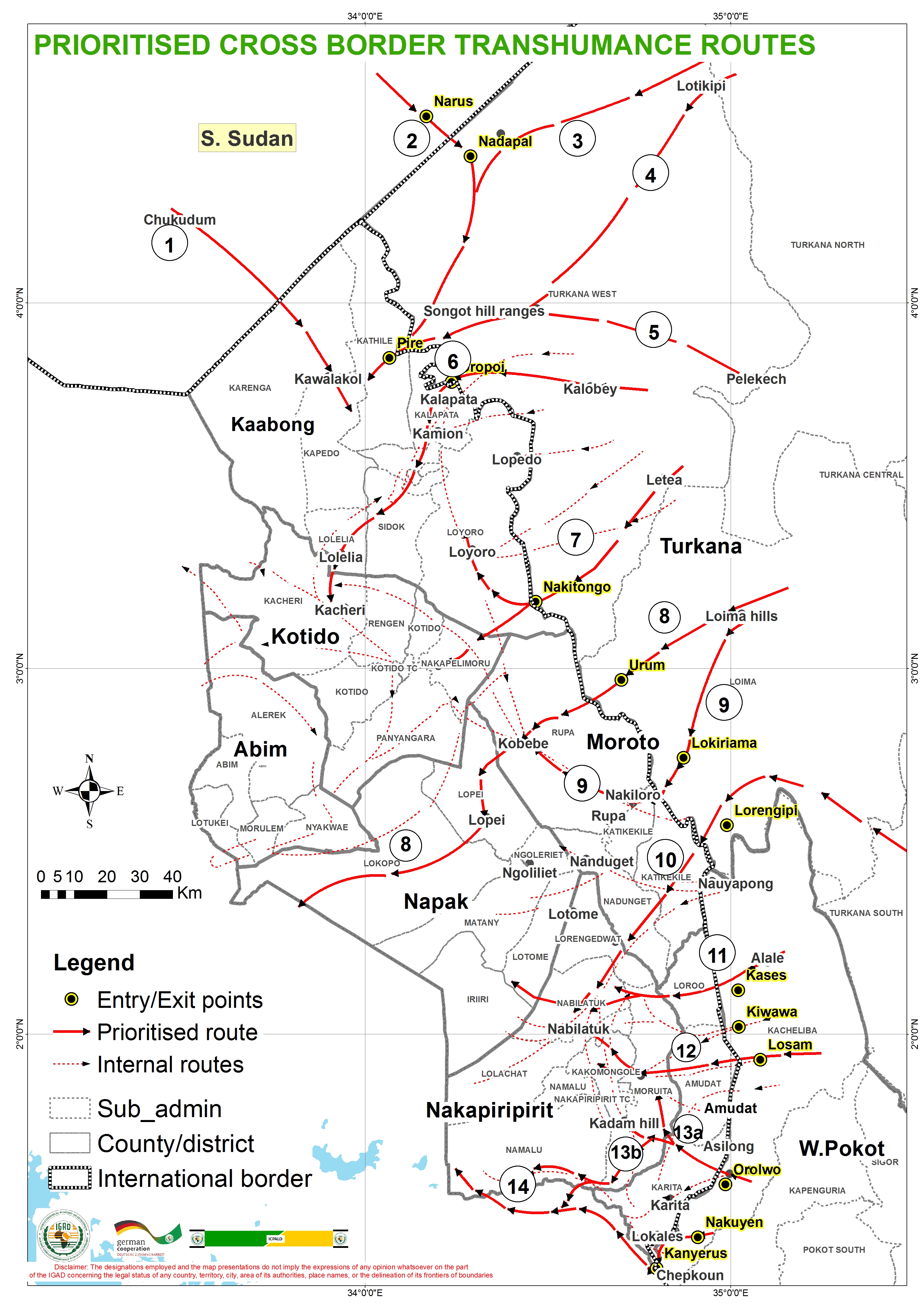 Mapping initiative focused on participatory mapping approaches through a series of 3 community mapping sessions held in Karamoja region; Uganda and Turkana & West Pokot; Kenya. This was initiated in late 2016 and validated in 2017 by bringing forth subject matter specialists and cross border pastoral communities, provided for a platform to incorporate spatially local knowledge and perspectives while still integrating modern/current spatial techniques. The initiative was supported by GIZ.